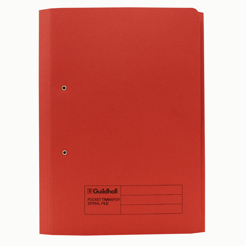 This Guildhall spiral pocket file is made from durable 315gsm manilla and can hold up to 350 sheets of 80gsm A4 or foolscap paper. The file also features a secure spiral mechanism for punched papers and a useful pocket on the inside right hand cover for storage of additional loose sheets. This pack contains 25 red foolscap files.